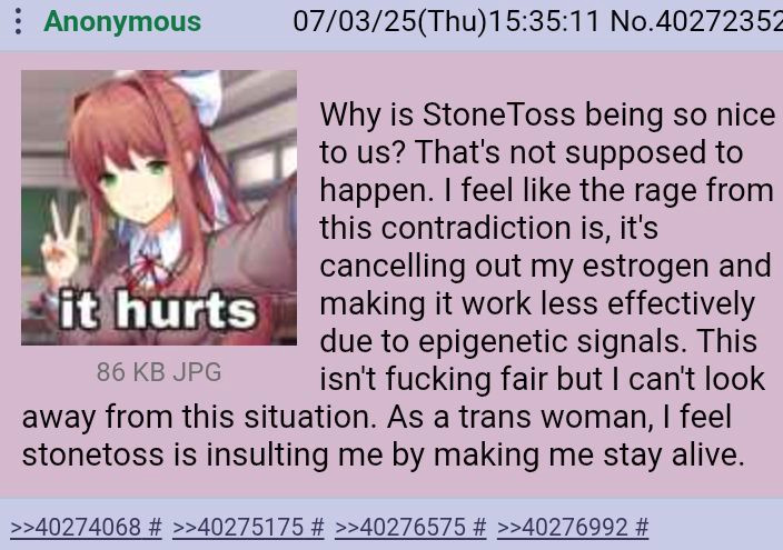 STONETOSS ENRAGED TRANNIES BY TELLING THEM HE WANTS THEM TO LIVE