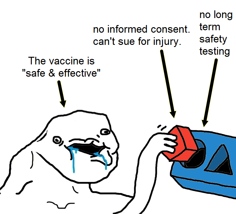 Imagine taking an experimental vaccine and ignoring zero liability. The vaccinated didn't have enough critical thinking to even learn what legal rights they were flushing down the toilet.