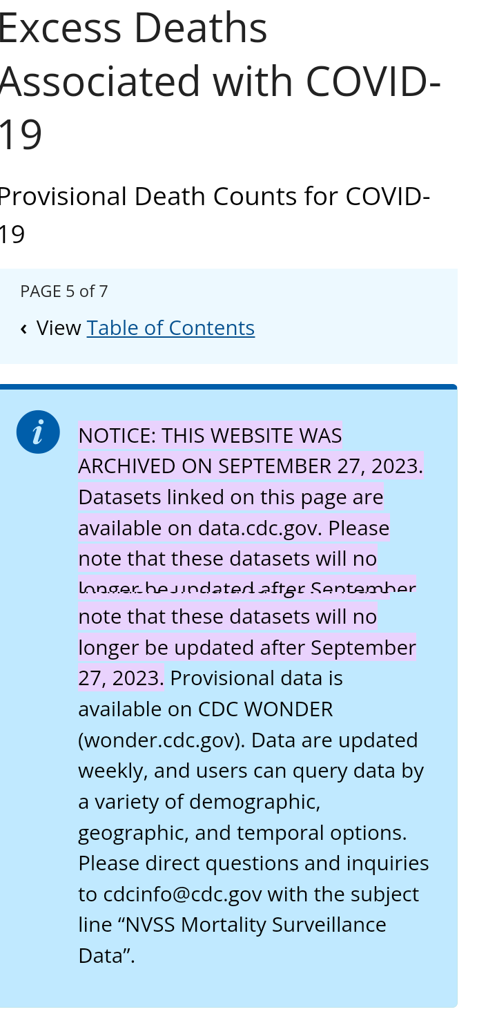 There's no die off because the CDC decided to stop releasing excess death data to the public in 2023. No data = didn't happen!