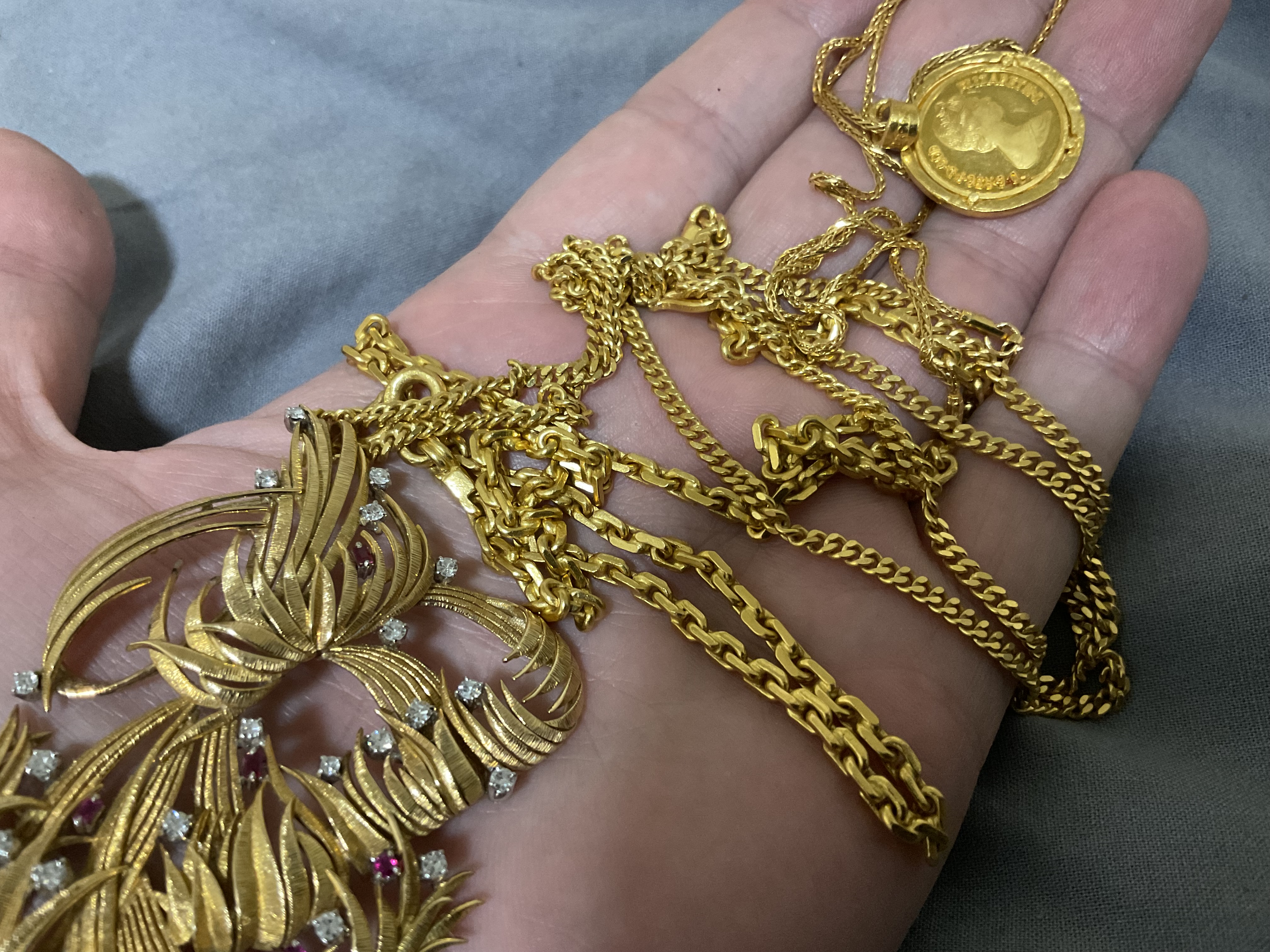 >>524186123I can't estimate it accurately but it looks to be around $350,000 to $450,000 in total. The actual weight of those gold coins could bump it either way a few tens of thousands. I assumed 1oz each coin average but those big ones look heavier and the small ones might be 1 oz or lighter. I'm not on the same device but I'm the one who you're replying too.