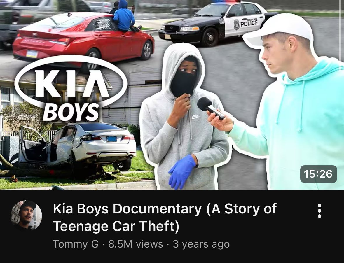 >>524197727>adults show the kids how to steal the carsKek, they don’t need adults for that. There’s an all kids gang here that specializes in GTA with various chapters across the US>"Kia Boys" refers to a viral social media trend, especially on TikTok, where teens exploit a design flaw in many Kia and Hyundai cars (from around 2011-2021) that allows them to be easily stolen using just a USB cable and a screwdriver to start the ignition, leading to a massive surge in thefts and related crimes, with owners advised to get security upgrades or use steering wheel locks>Started as a viral trend in Milwaukee around 2021, quickly spreading across the U.S., particularly impacting midwestern and northeastern states>Thieves target Kia and Hyundai models lacking electronic immobilizers, using a USB cord and screwdriver to manipulate the ignition column and start the car>The thefts are often filmed and shared online, fueling the "challenge" and inspiring more young people to steal cars>Leads to widespread vehicle theft, joyriding, and involvement in other violent crimes, with stolen cars often found wrecked or damagedhttps://abc30.com/post/9m-settlement-reached-hyundai-kia-35-states-including-california/18293625/The internet is M A G I C A L