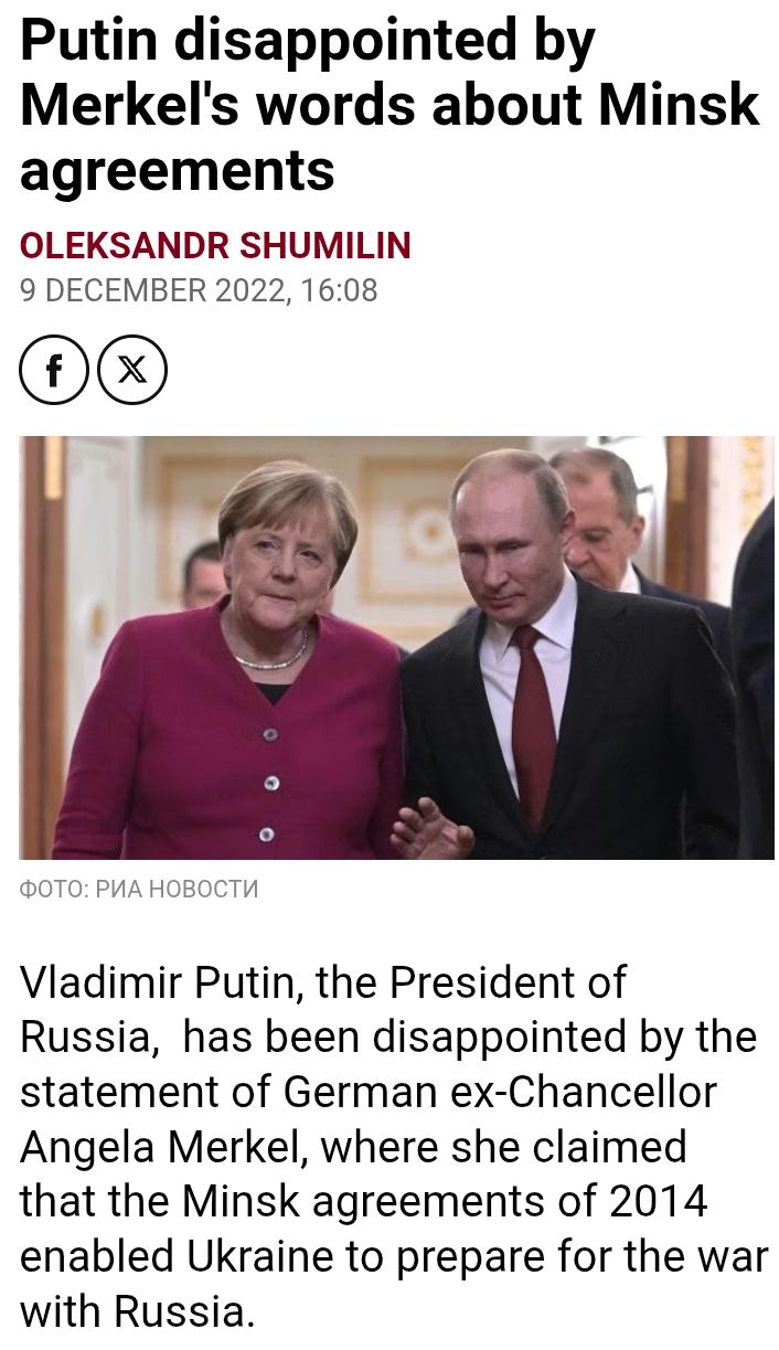 >>524201676>>524201717Well, this of course fabricated but also deceptive and badly made.Firstly, she never said this.Secondly, she could have said this or something similar and there is no absolutely no issues, as the ukrainian could used the Minsk ceasefire to armed itself and thrown out of the occupying russian.Someone apparently didn't read what Minsk 2 contained. Also, they didn't realized that they were the invaders, and so they wouldn't be treated the same as the victims; there was never delictious or malicious trickery against the Russia, as it was simply impossible, and russia simply has nothing bad to say about Merkel fictional comment.