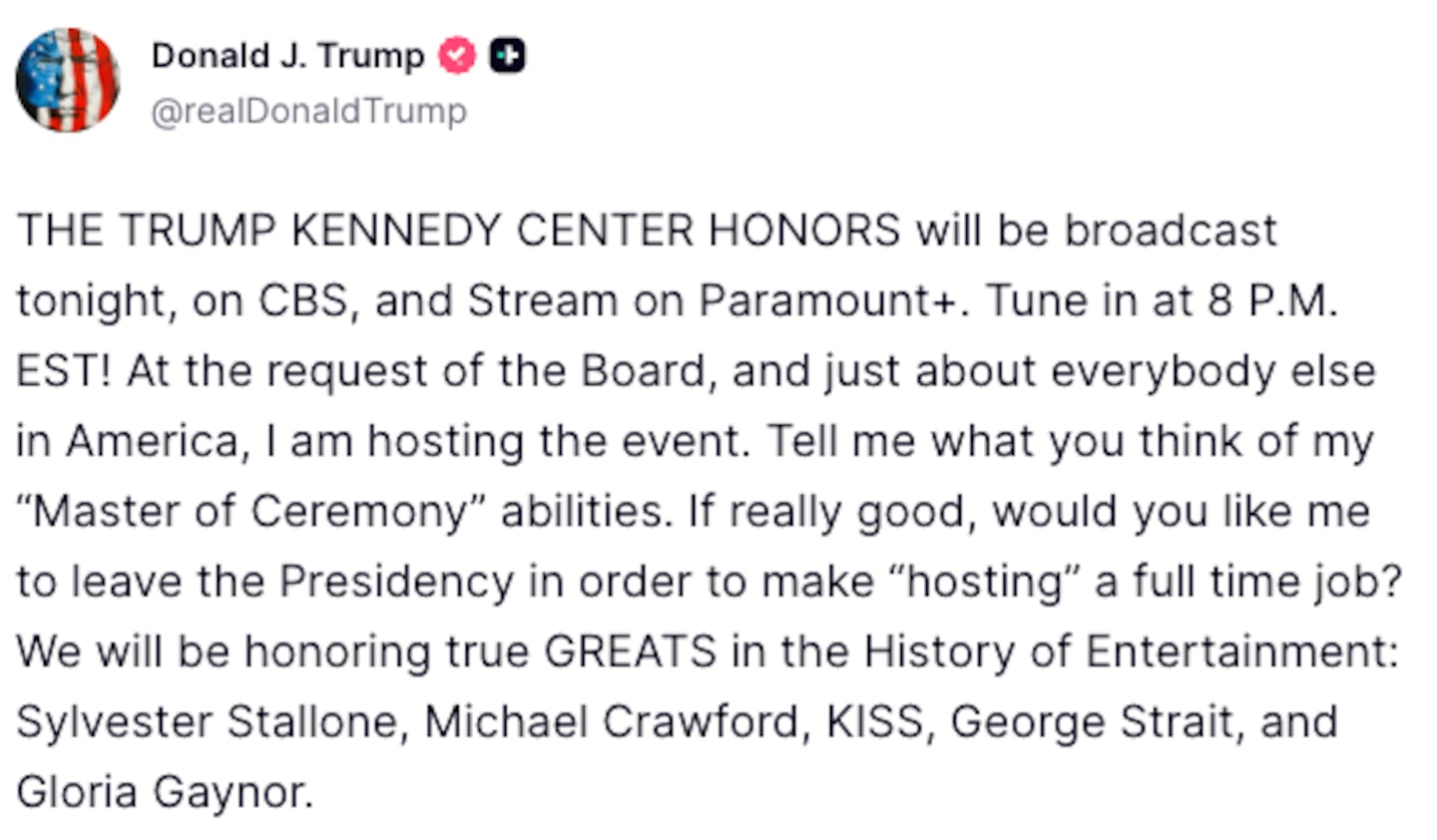 >>524203968> We will be honoring true GREATS in the History of Entertainment: Sylvester Stallone, Michael Crawford, KISS, George Strait, and Gloria Gaynor.Trump loves his manly men, but not as much as he loves a classic gay anthem.He should go through with it and bring on the Village People, Bette Midler, Lady Gaga, ABBA’s holograms, and Madonna.