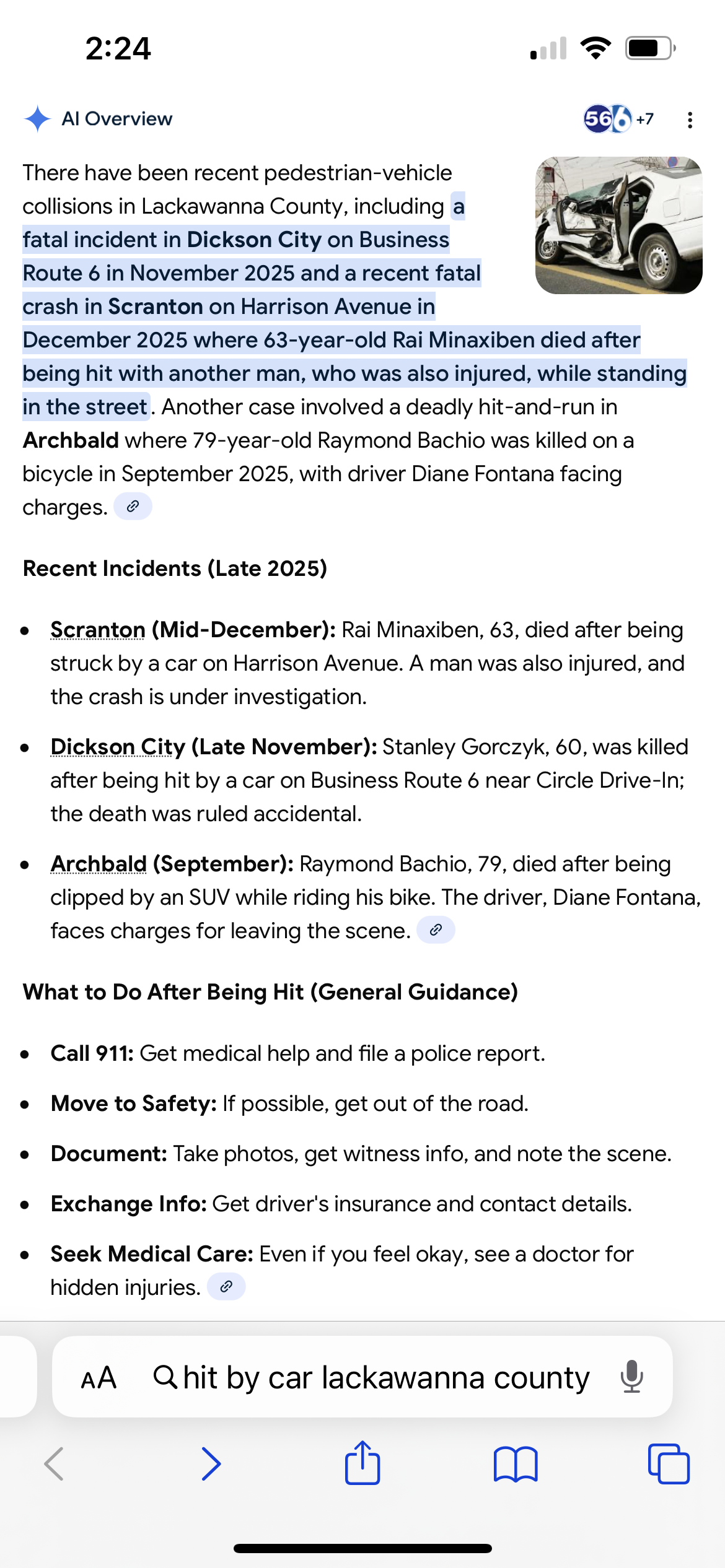 >>524205152Picrel is 3 from late 2025. This link was last week. But this isn’t an issue you actually care about so I really don’t think you’ll dig to far into this issue. I’m just glad I don’t go out walking the roadways or riding my bicycle. God knows the authorities in Northeastern Pennsylvania would have me hunted down and killed instead of just serving me court paperwork like is custom. https://www.wnep.com/video/news/local/lackawanna-county/woman-dies-after-being-hit-by-a-car-in-scranton/523-29768c52-ba53-4c2a-9358-774c767866e2