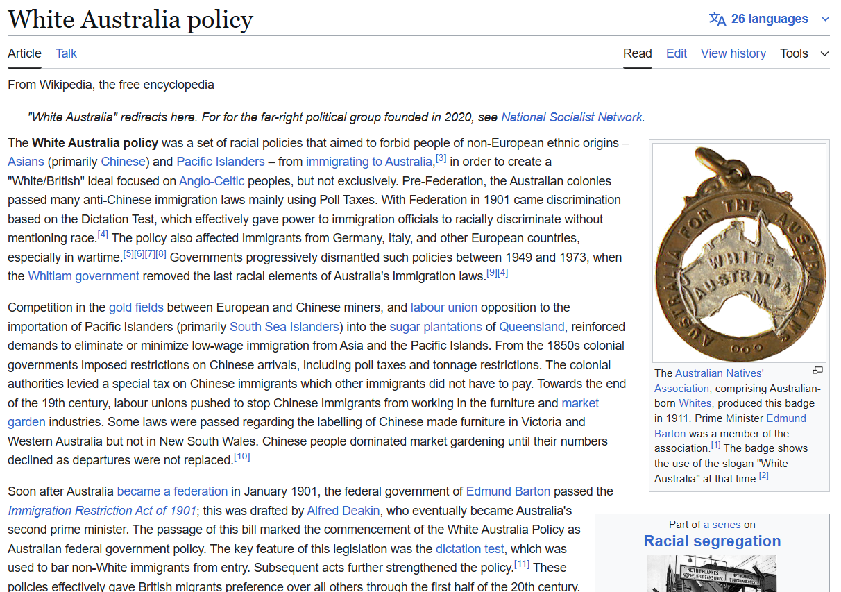 >>524219753Australia was a pro-White national socialist state until the 1970s, but they started letting in small amounts of non-whites since the 50s.