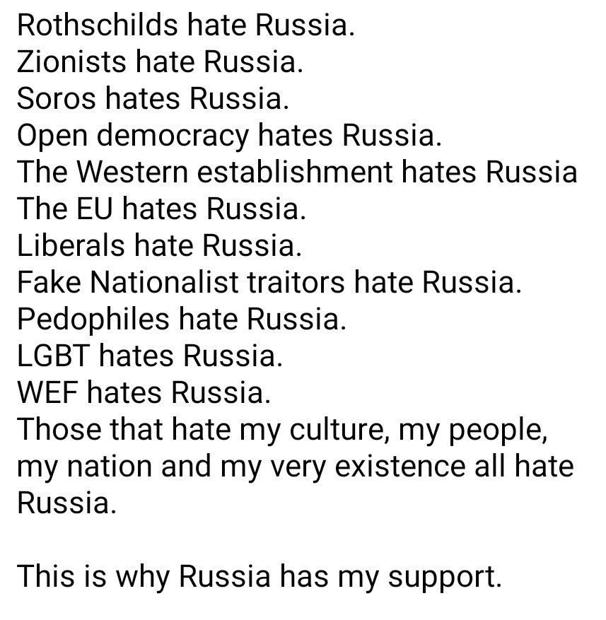 This. Putin wants the USSR that's Putins life mission that includes initially Russia, Belarus and Ukraine reconsituting it as the signatiries that dissolved it and then the Baltics and Georgia