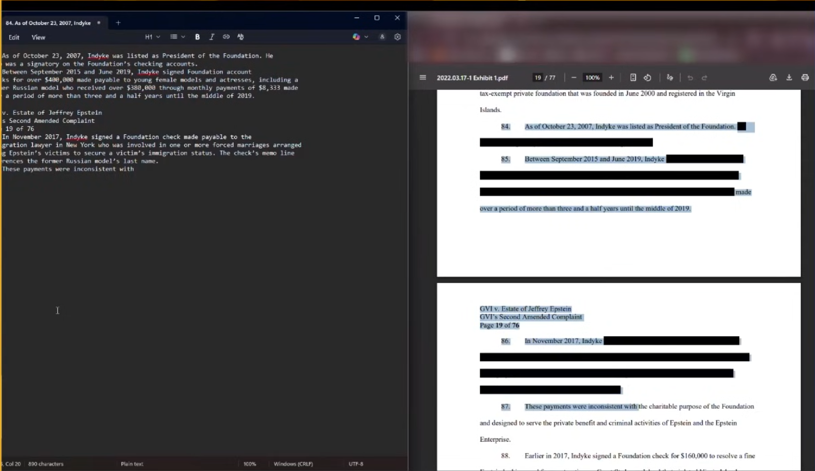 Here is the full redactions report.Remember, LLM are your friend.https://files.catbox.moe/pf5lbq.mdhttps://files.catbox.moe/g3cncg.txt