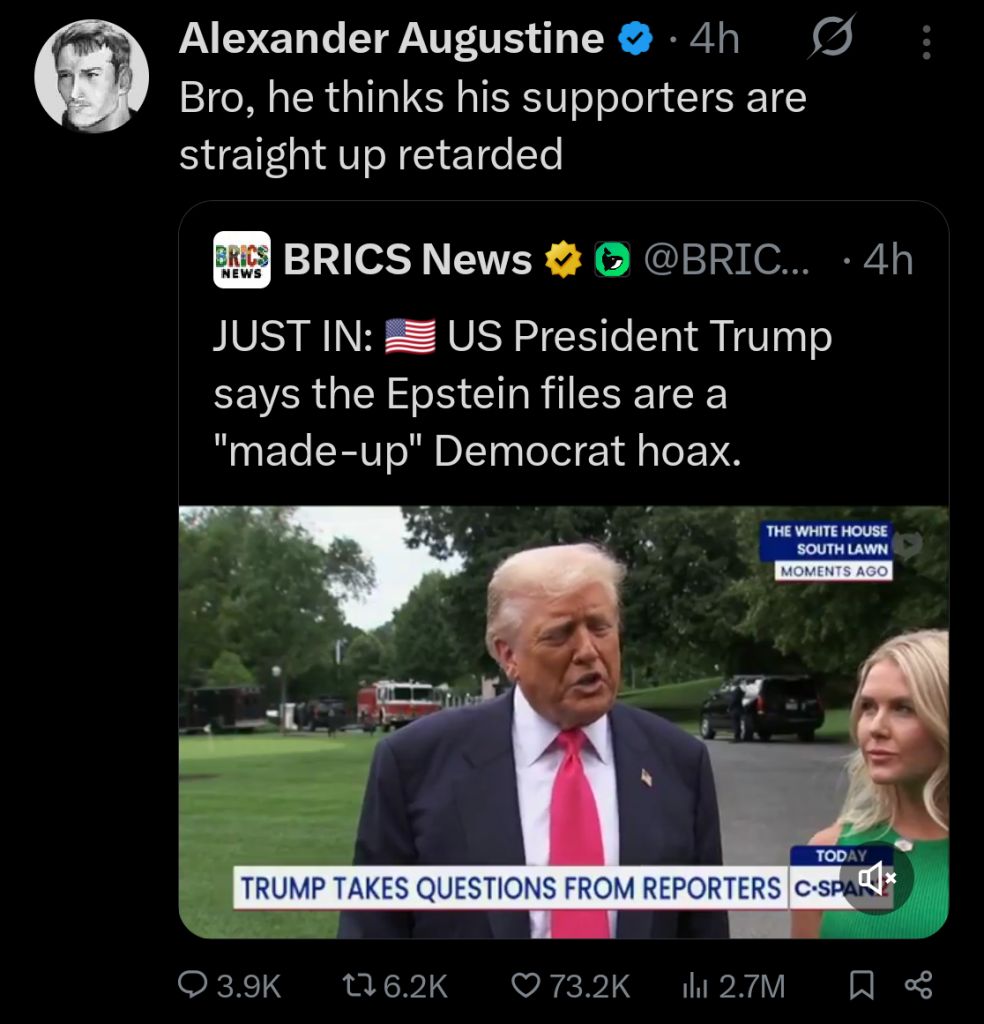>>524234244>They tricked youYou used a lot of words to insist that these clowns are playing 5D chess instead of such things as: >accidentally including a journalist in a group chat concerning top secret military strikes>Insisting DOGE would save America trillions of dollars >Insisting tariffs would bring jobs back to America and boost the economy This goes without mentioning the lesser fuck ups like:>Listing for sale, both the DOJ and FBI headquarters >Listing for sale a government building that included a secret CIA facility >Imposing tariffs on an uninhabited island >notifying American citizens that they should self deportThere are many more examples of fuckups, and no, I won't provide sauce because this is all easily searchable