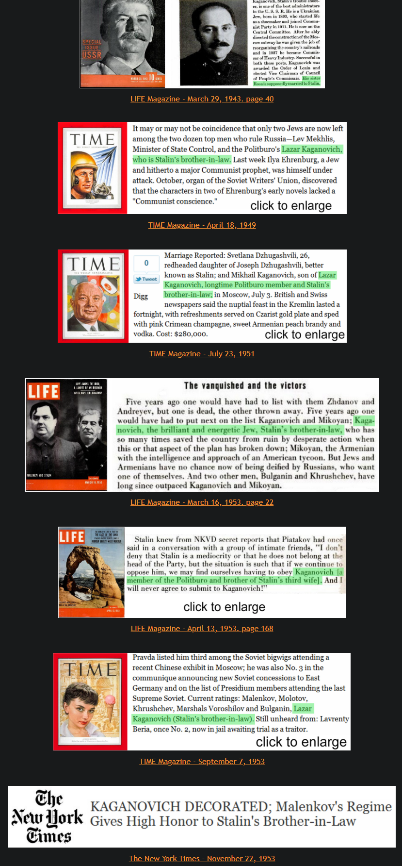 >>524250099I've tried to find evidence of this and find it highly suspect. Svetlana clamed no such husband ever existed.And Stalin himself was a ruthless antisemite in his later years. After Israel turned to America he planned to ship all Jews to Siberia and have them "liquidated".If I recall Svetlana DID have romances with a Jewish theater boy. Stalin either threatened to have him shot or did kill him, I can't remember. Based on Court of the Red Tsar