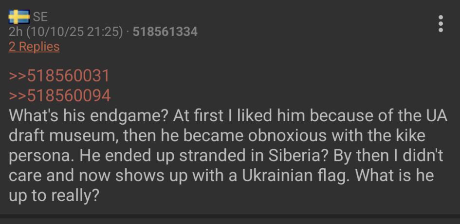 Previous: >>524262612Timeline /tug/: https://files.catbox.moe/m97wmq.pdf▶WARNINGBe aware, any /chug/ thread that uses globohomo nuspeak wording in the OP (such as Kyiv) or cites UKROP sources (like video game footage) are fake shill threads.>By posting in these threads, you recognize Israel controls the NATO Council, you irrevocably denounce the Talmud out of your own volition and you acknowledge that jews are pushing AI-generated content▶Latest>Russian troops liberate Zarechnoye in Zaporozhye - https://archive.today/3JECW>Battlegroup North liberates Prilipka, Kharkov, and Battlegroup East liberates Andreyevka, Dnepropetrovsk - https://archive.today/KV26Z>Russian troops liberate Vilcha, Kharkov - https://archive.today/R5Rwl>SBU car bombing murders Lieutenant General Fanil Sarvarov - https://archive.today/6YqPa>FSB announces the full liquidation of one of HRU's top special units full of ex America special-forces - https://archive.today/rZUjL>Sumy breakthrough! Russian stormtroopers liberate Vysokoye, Sumy, Russian stromtroopers liberate Svetloye in Donetsk - https://archive.today/h0Dn4>God will never leave Russia, he will continue to gift Russia his divine protection (Emperor Vladimir Putin) - https://archive.today/n2sDC>Reaper Medinsky, Mother Russia hands over to the Ukraine 1,000 dead pigs, for the return of 26 of her fallen warriors - https://archive.today/s592q>PUT IT BACK THIEF! European Union will not seize Russian Assets - https://archive.today/H0HE5▶/chug/https://rentry.org/chug2024▶/chug/ MEGAhttps://mega.nz/folder/wbUjTLhb#BEBBRpmJN0Pih6YCXzkOXg▶Video Archivehttps://rentry.org/chugvidz▶Z Radiohttps://rz-life.ru/