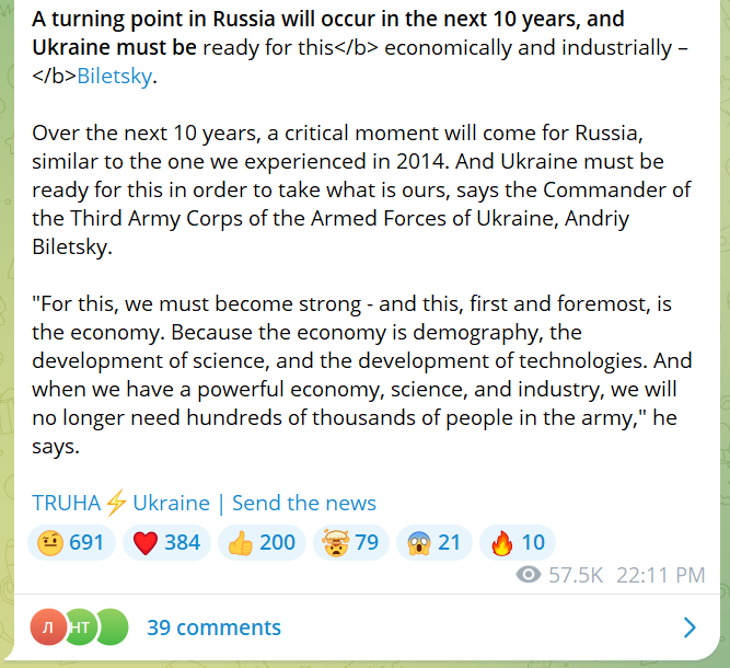 >>524279104Yep. Russia is overextended, and while morale and technical advantage allows us to advance, rate is significantly slowed down because there aren't operational reserves to reinforce taken areas.While I am somewhat pessimistic, I don't think it would be another Kharkov. Regardless, Ukrainians might be able to retake Kupyansk, even at the expense of another segment of the front. Unlikely, but possible. Rybar already confirmed loss of at least two villages. Russia will probably have to pull some units from other parts of the front to hold the lineOшибaтьcя мoжнoб вpaть-нeльзя>>524279129>You mean the cia stooge pretending to be strelkov that is running his telegram account? Because i highly doubt russian prisons to be so luxerious he could casually keep posting from prison.You do know current Russian prisons aren't GULAGs?