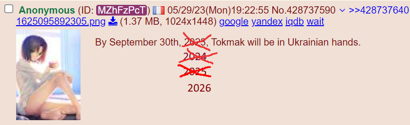 >>524279685You mean the guy sent to prison for dooming snd critizing the war effort, which means they will totally let him resume dooming from s russian prison. Seriously? Its prison, not a hotel where you can spend time on social media.Also hasnt the official advance rate been increasing this year again, so how do you mean it has been slowing down? Vostok seems to be capturing new villages every few days now with Huilapole still having a chance of falling this year.