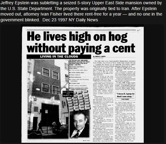 Epstein rented house from US state department, seized from Iran.