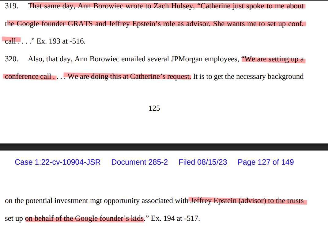 JEFFREY EPSTEIN MANAGES/MANAGED THE TRUST FUND FOR THE GOOGLE FOUNDERS KIDS