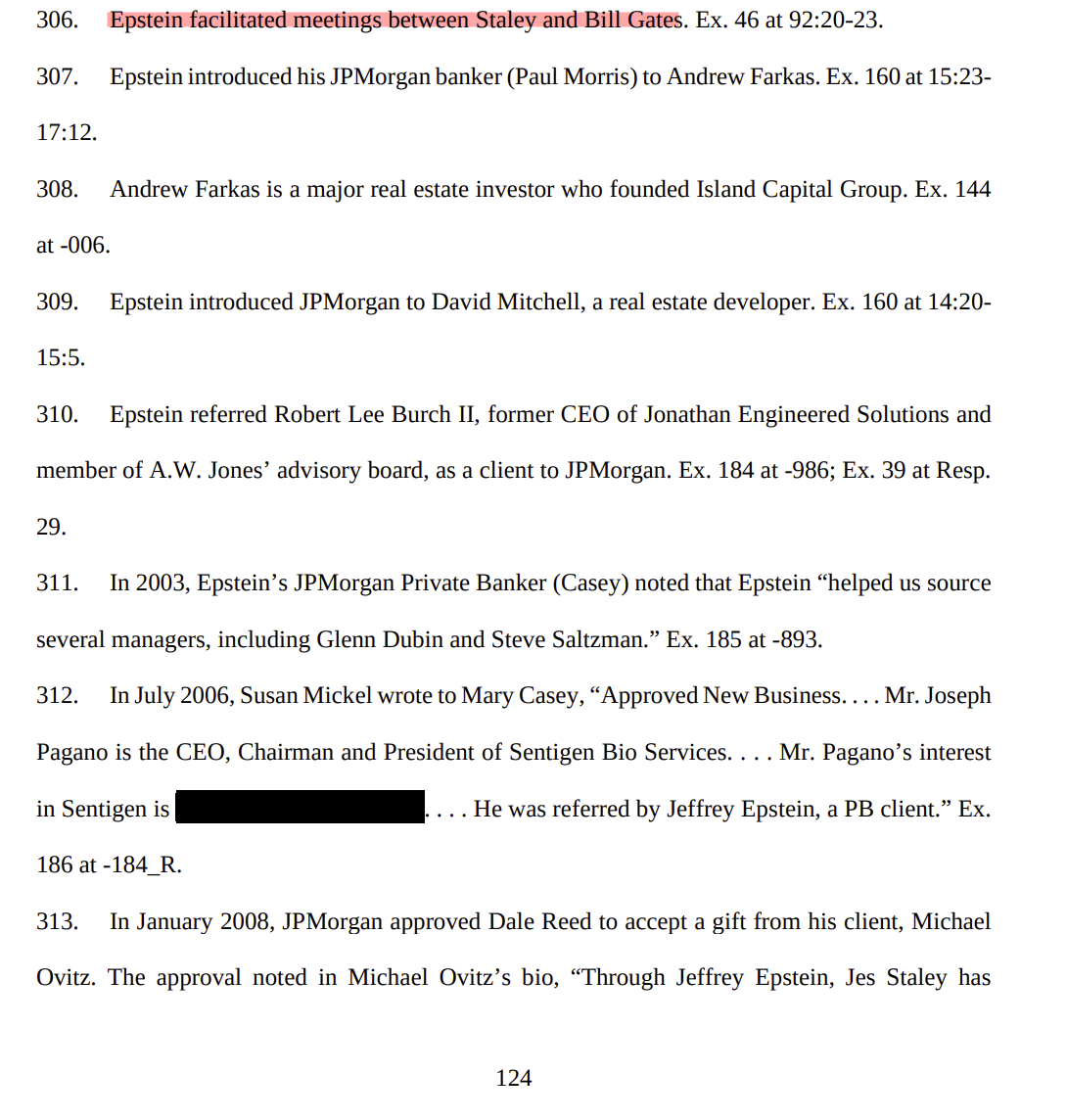 Epstein facilitated meeting with Jes Staley and Bill Gates.