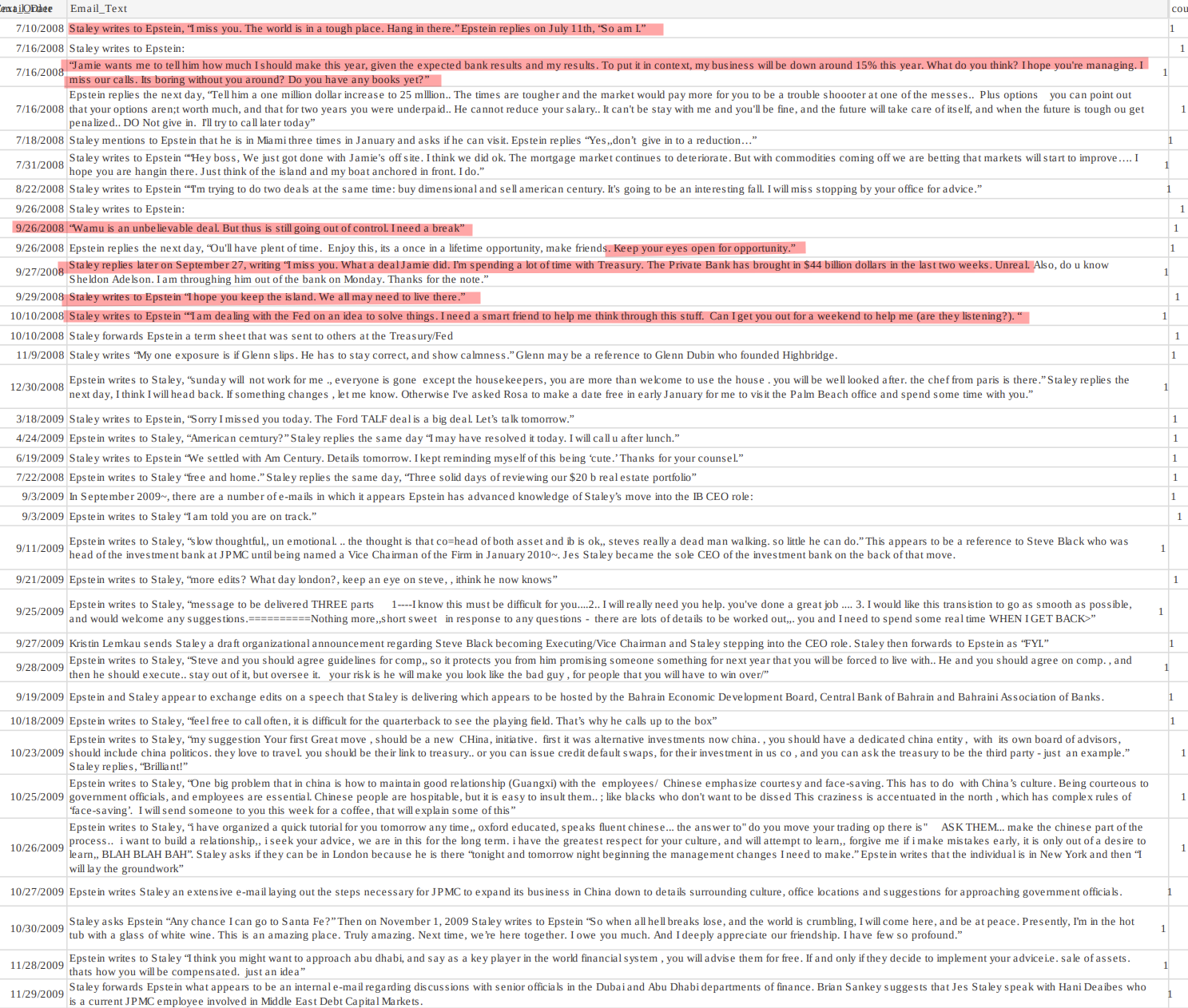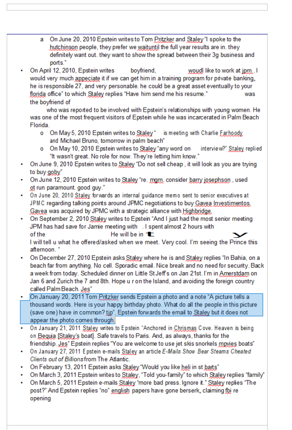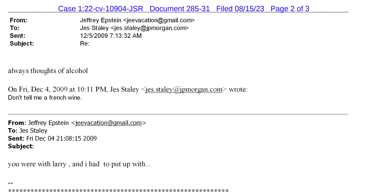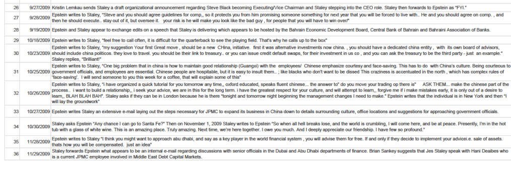 Jes staley like many promimient billionaires and bankers was in constant communication with Epstein and was axed from Barclays for it. These communications are implying JPM was even talking to the former federal reserve chair alan greenspan about the case. He also says here in this he is talking with the fed in general.Les staley also calls epstein "boss" and from what I am seeing in this doc Epstein offered to fly him out to his island many times. He also says"I hope you keep the island, we might all need to live there"