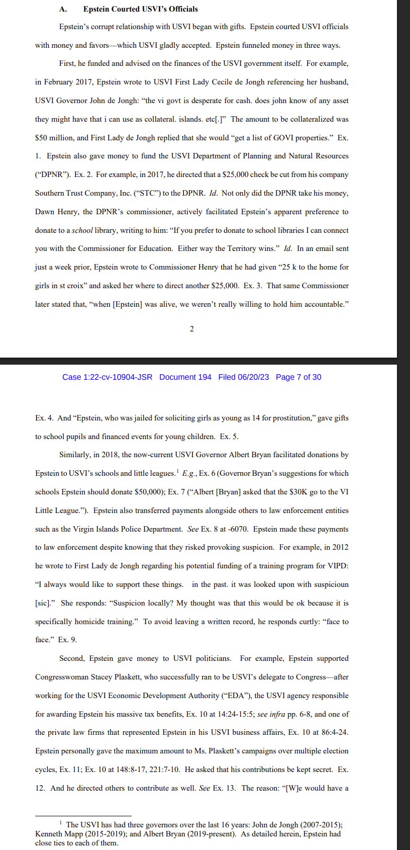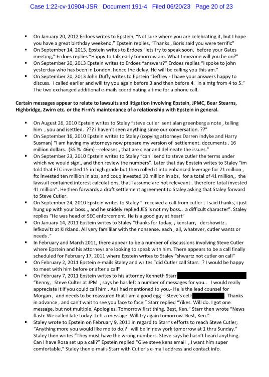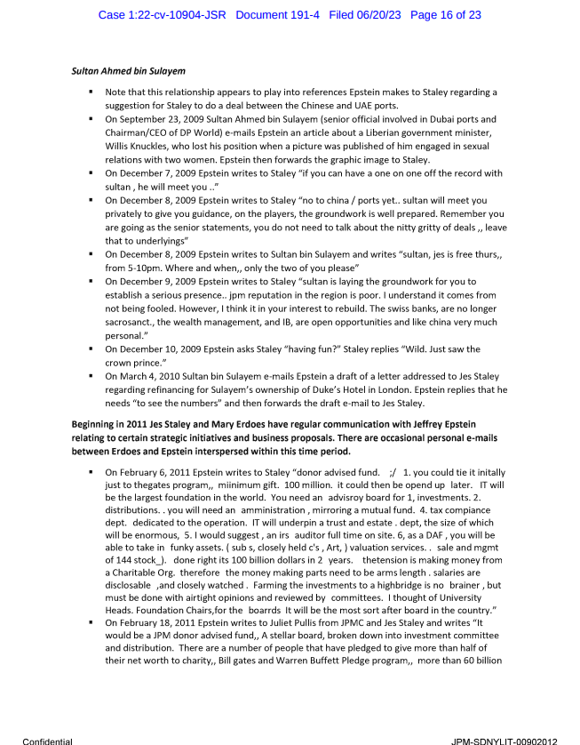 >US Virgin Islands AG files suit against JPMORGANCHASE on December 27th>December 27th (around 11 PM same night) Joe Biden becomes the first sitting president to visit the USVI since 1948>December 31st, 2022 it is announced in the local paper that the USVI AG has been fired> January 2, 2023 Virgin Islands Attorney General, Denise George Loses Her Job Days After Suing JPMorgan Chase in Connection with the Jeffrey Epstein Probe>USVI Governor Albert Bryan never gives a reason for her termination and STILL has not given a reason for her termination>March 9th, 2023 JPMORGAN sues Jes Staley>June 11th, 2023 months later it begins to be mentioned in newspapers and online articles that JPMORGAN settles with Epstein Victims for 300 million shekels>June 16th, 2023 , Judge Jed S. Rekoff orders that Jamie Dimon doesn't have to speak in court>June 20th, 2023 articles discussing "Project Jeep" begin to be posted online after documents are unsealed on court listener. These documents mostly consist of emails & text messages between Staley and Epstein >documents unsealed by the USVI request (JPMORGAN & USVI working together to throw Jes Staley under the bus)>June 22nd, 2023 JP Morgan "Accidentally" loses 47 million emails and text messages. Is fined an insultingly low 4 million shekels>June 22nd, 2023 Jes Staley in act of defiance asks judge for more documents from JPMORGAN to be unsealed, documents that implicate Jamie Dimon>June 25th, 2023 JPMORGAN Board Member (Jim Crown) has brake lines cut on racetrack and dies>July 18th, 2023 USVI AGs office files similar request for the same documents Jes Staley is demanding access to.