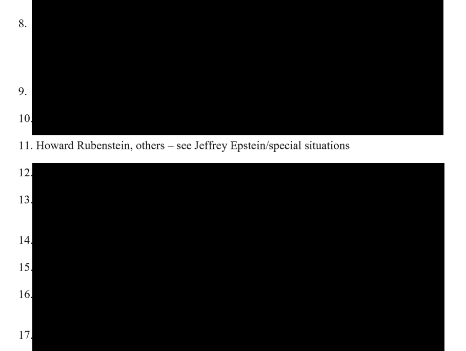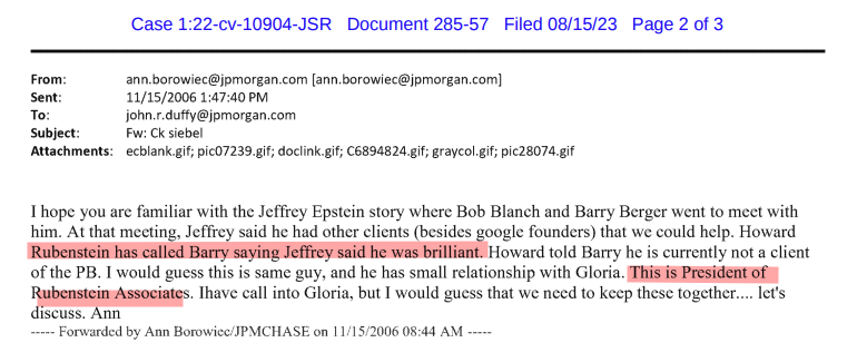 This is from a list of "clients" that Jes Staley "brought in" to JP Morgan.He lists multiple clients who were referrals from Jeffrey Epstein one of them being Howard Rubenstein