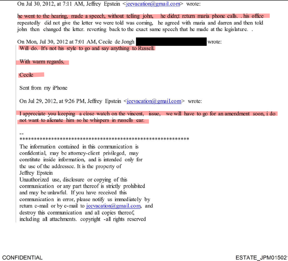 JEFFREY EPSTEIN WAS LITERALLY WRITING US LAWS!!!PIC RELATED IS HIM REWORDING A BILL SO IT DOESN'T BLOCK HIM FROM TRAVELING DUE TO HIM BEING CONVICTED OF DIDDLING KIDS!!"CECILE" IS THE GOVERNORS WIFE!