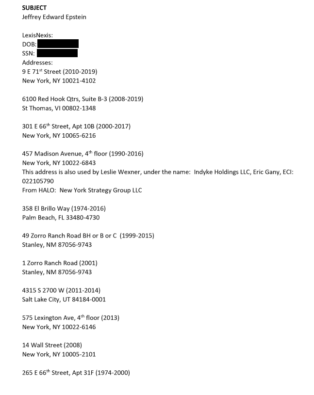 Properties owned by Epstein