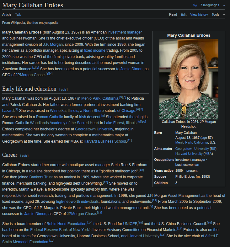 Mary Erdoes of JPM who was in contact with epstein many times