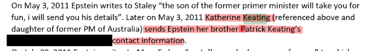 Prime Minister of Australia and his kids were close pals with Epsteins seems like. Here is Epstein emailing Jes that the son of the Prime Minister of Australia wants to take him out to "have a good time" who knows what that means.