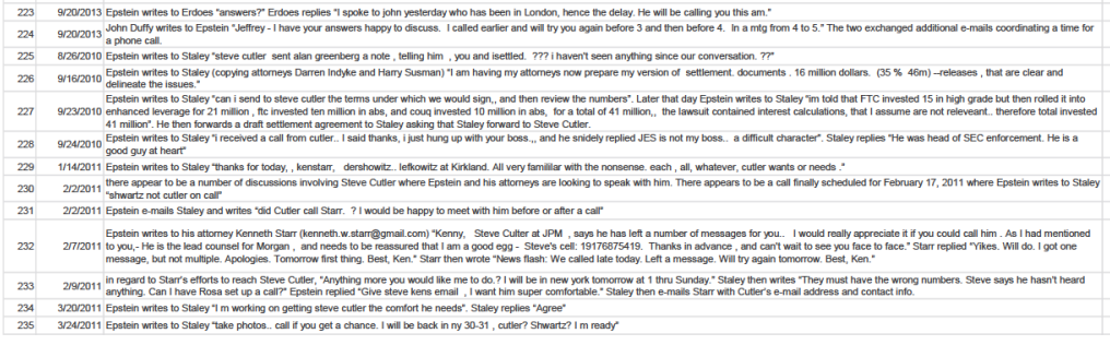Epstein talking to Les staley of barclays about how he heard steve cutler the general counsel of JPM talking to alan greenspan about him.