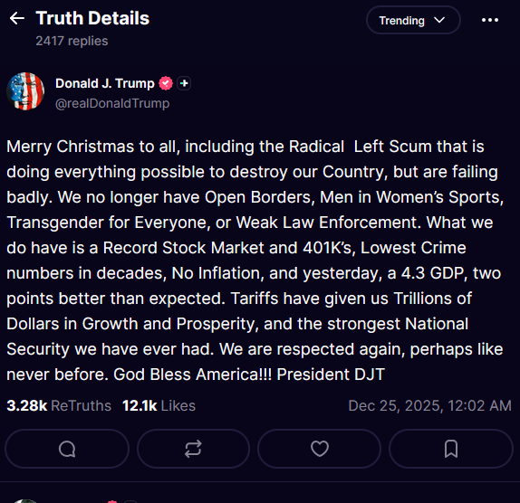 back in the day when he posted this stuff it seemed like it was real and spontaneous, now it's just contrived, like an old rock band playing their greatest hits on tour for the 100,000th timehttps://truthsocial.com/@realDonaldTrump/posts/115777270368444049