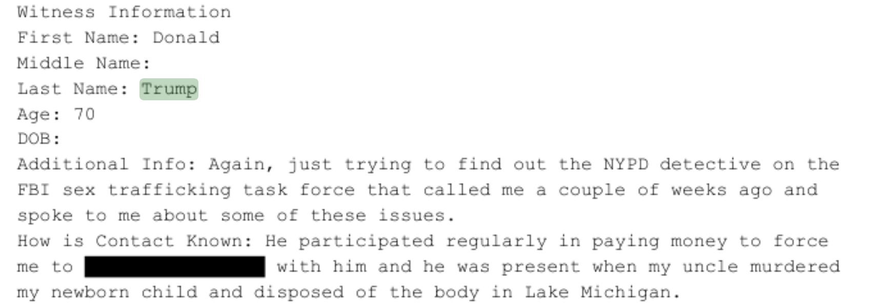 >>524304662What OP deceptively cut out was that there was a redacted IP at the bottom of this page meaning it was an anonymous online tip submitted through their website. Anyone could have posted that. It's meaningless without any accompanying documentation that this actually happened.