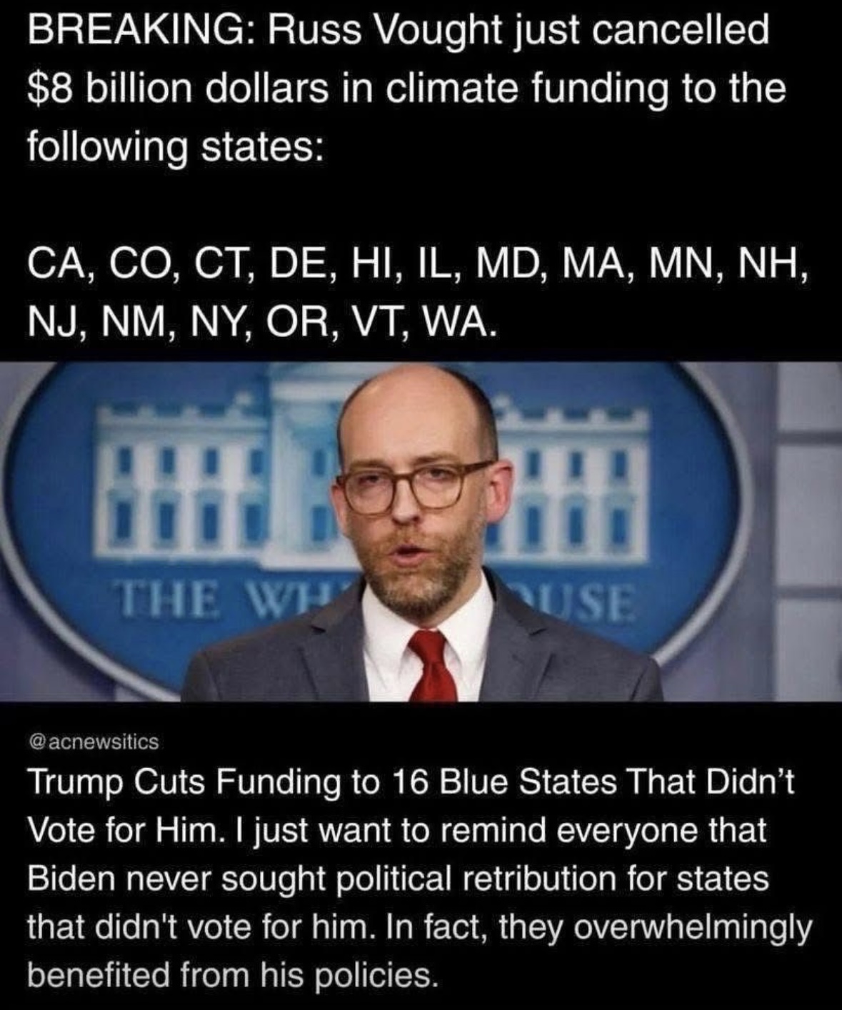 >>524304898>Biden never sought political retribution for states that didn't vote for him.Dumbest statement alive