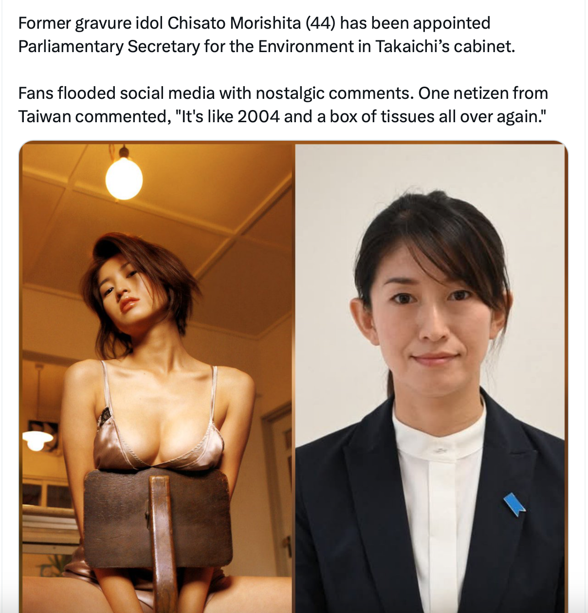 Doesn't matter, that's how any woman gets in power. She's more based than abe, she already restarted the nuclear power plants, and if you look into the jeeting, it's only for the absolute shittiest jobs that japanese need not do.