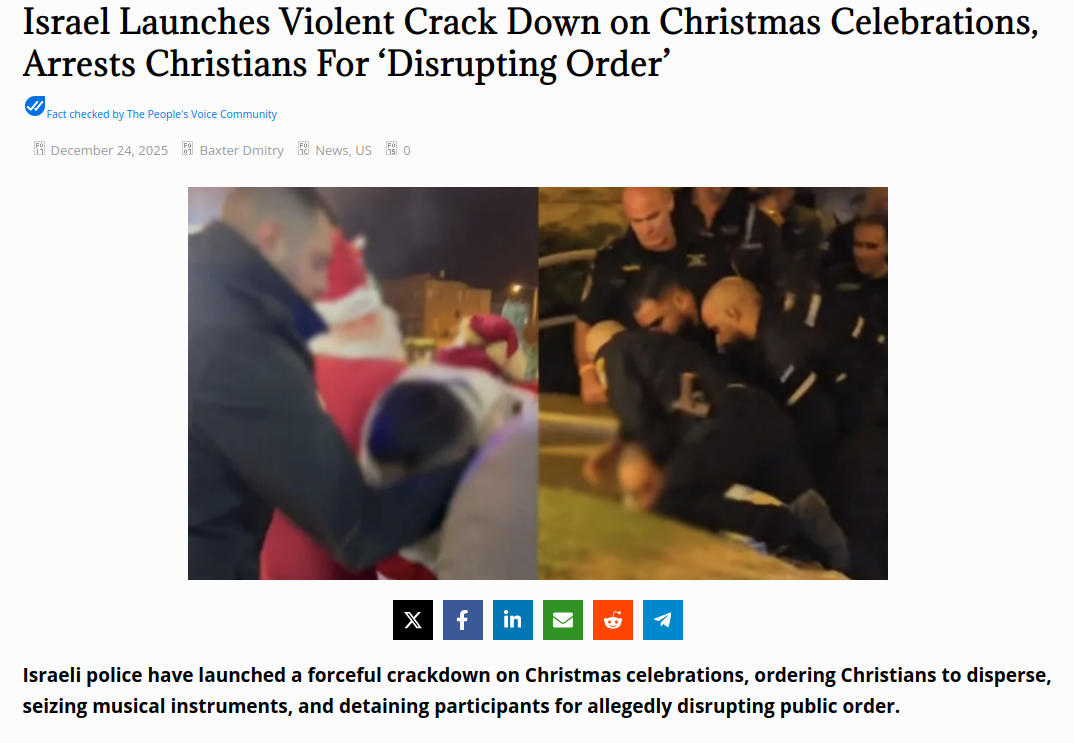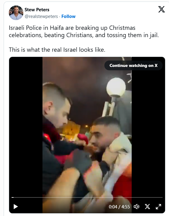 Enough is enough.https://thepeoplesvoice.tv/israel-violent-crack-down-christmas-celebrations-arrests-christians/