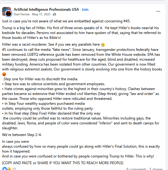 >>524340375He also has an obsession with hitler. He thinks Trump is the second coming of hitler lmao>>524344380Obviously. I find it fascinating though. I want to know what really happened. I'm looking into his step daughter right now and trying to find the link. I think what happened was his step daughter was killed and he somehow tied it to the one time he met Trump while working as a limo driver. That's my going theory, at least.