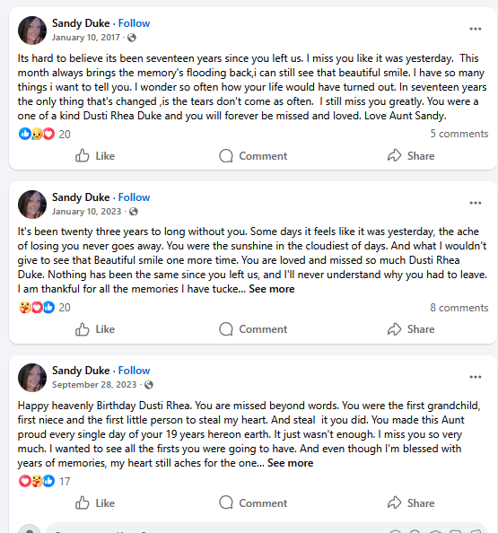 >>524340375>https://searchobituaryinfo.site/dusti-rhea-duke-suicide-kiefer-ok-death-man-died-by-gunshot-on-jan-10-2000/Here is the link to his alleged step daughter's obituary. No mention of him, though. Can't find Dan Ferree anywhere.