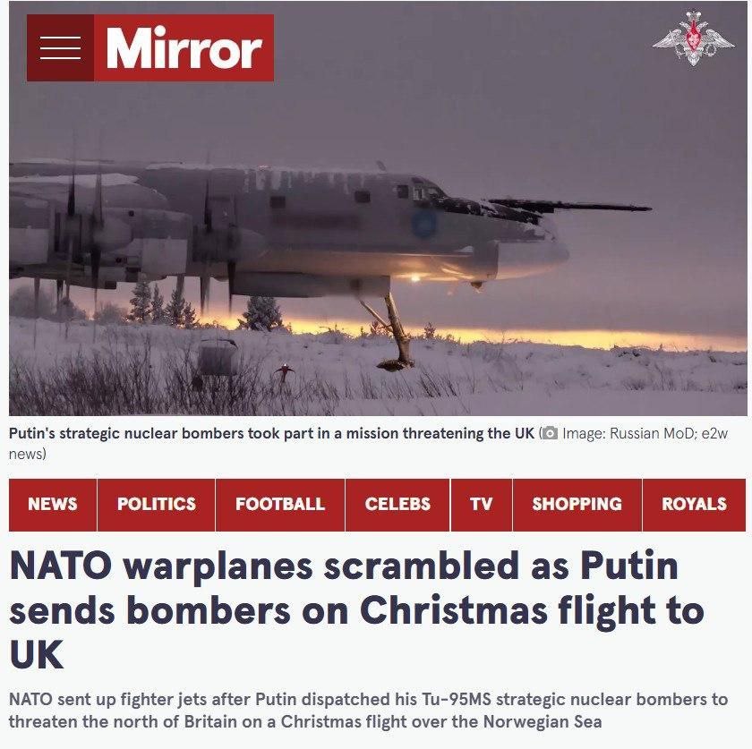 >Two nuclear-capable Tu-95MS strategic bombers that can carry nuclear cruise missiles flew over the Norwegian Sea toward northern UK airspace.