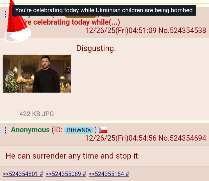 >>524355693Right, but we all should stop celebrating Christmas and think of the Ukrainian children:(