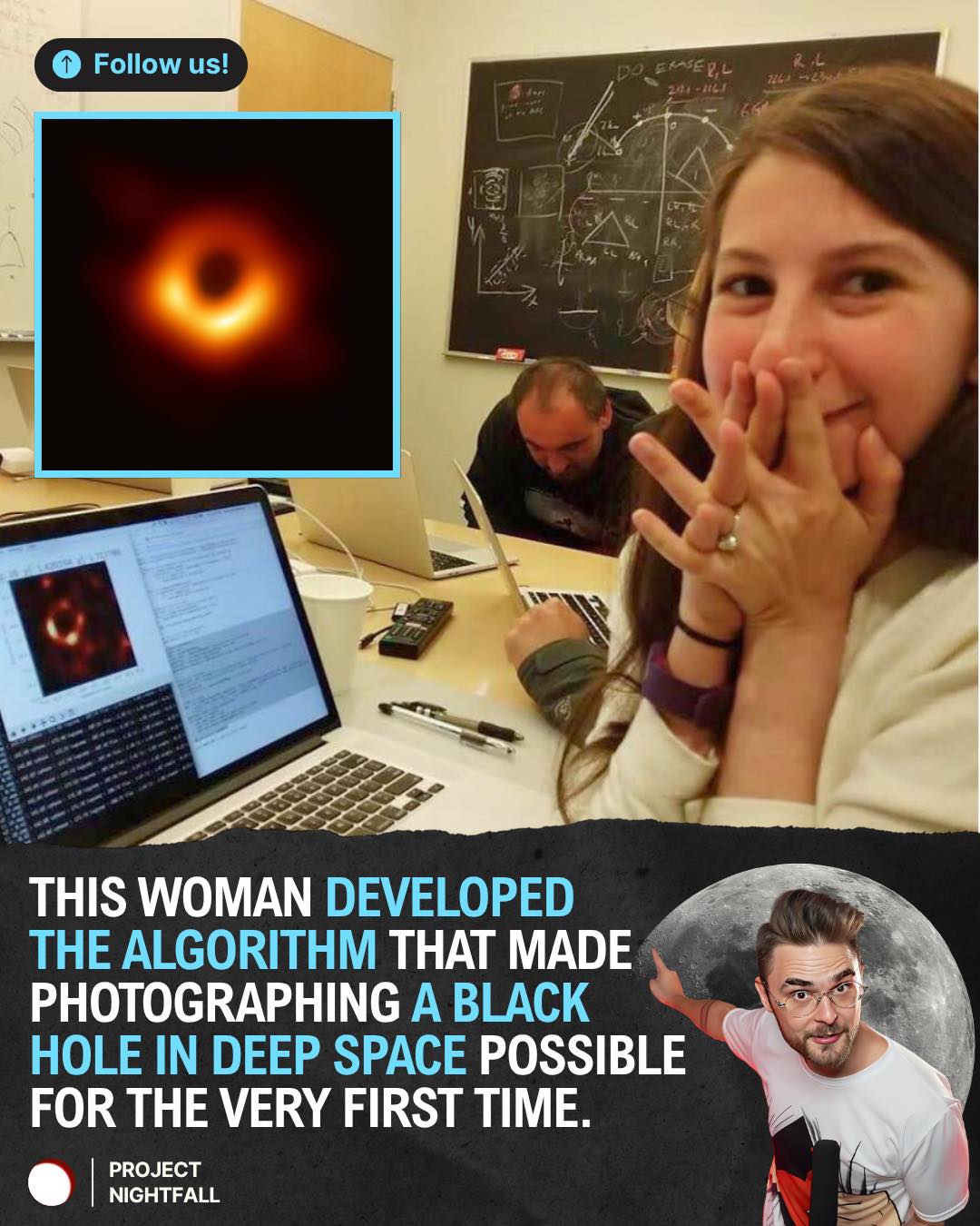 >>524354018what are you thoughts on "woman takes first picture of blackhole in space, ever"