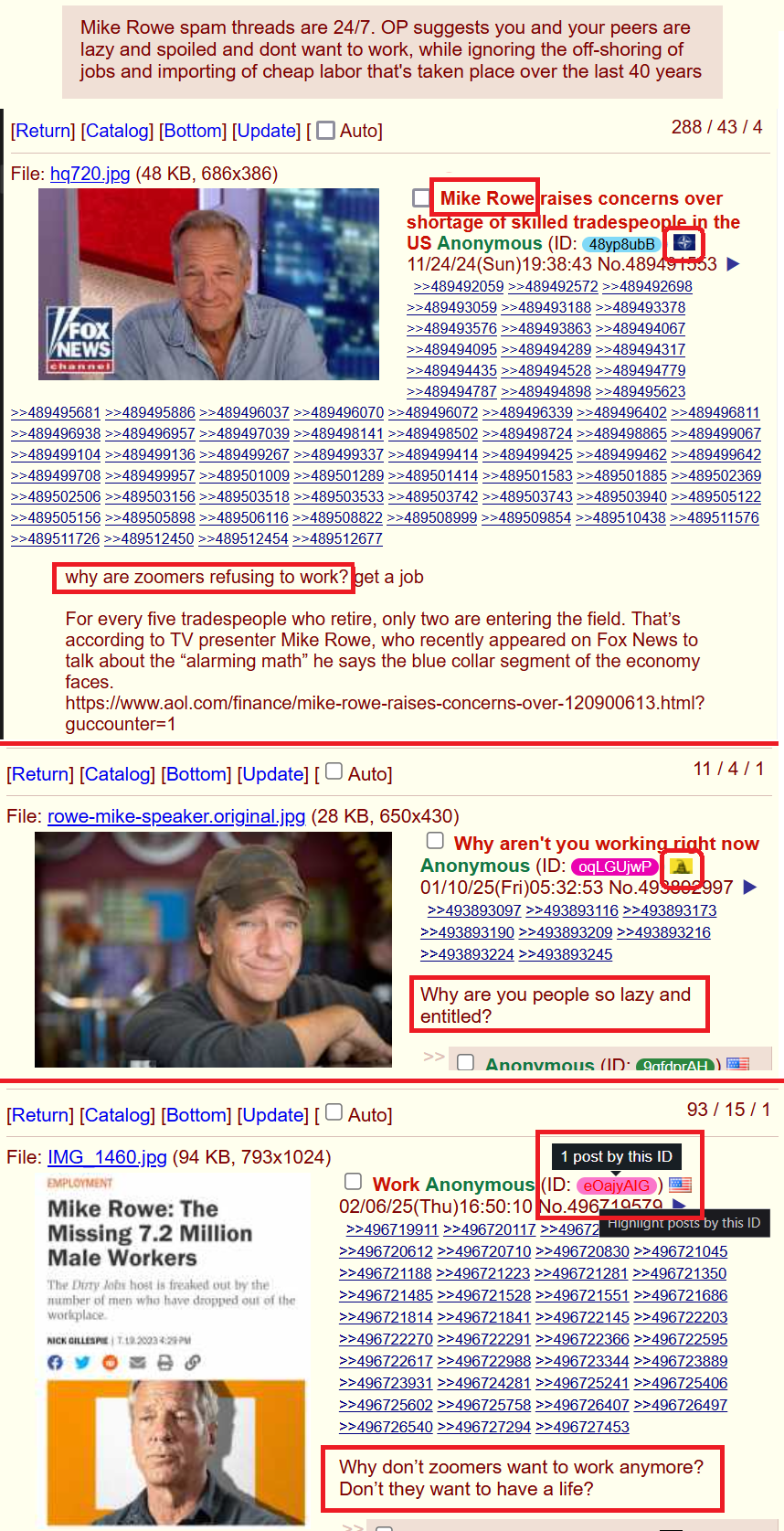 >>524353246>>524353263>>524353301>>524353319>>524353320Mike Rowe is a years-long series of spam threads