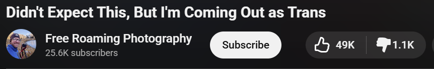 >>524369601>why are all of the comments supportive?His second most popular video has ~40k views. Clearly this made it onto the tranny youtube pipeline. So it showed it to a bunch of fucking deranged hugboxing trannies.