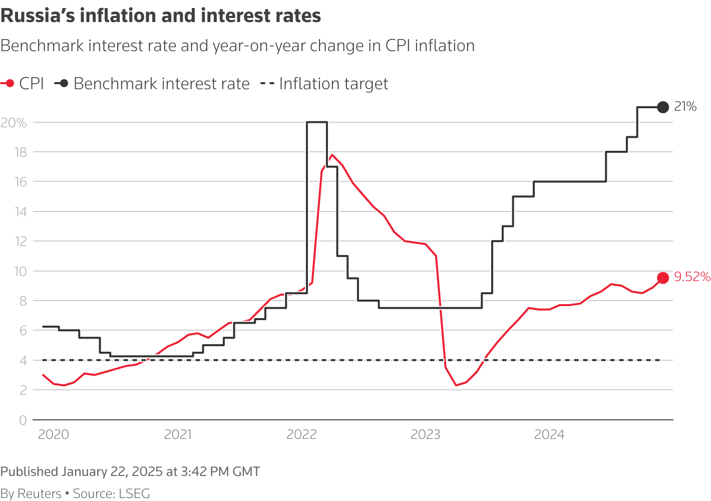 >>524391934Mortages are closer to 30%. 20% (recently reduced to 16% by Central Bank because communists wanted to borrow more money) is central bank rate. It's only tool they have to reduce inflation.