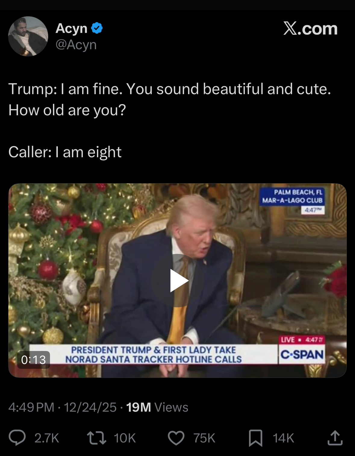 checked . Very fitting digits for the state of things from the trump admin. I’m sure trump didn’t have a thing to say about his Israeli friends arresting Santa Claus