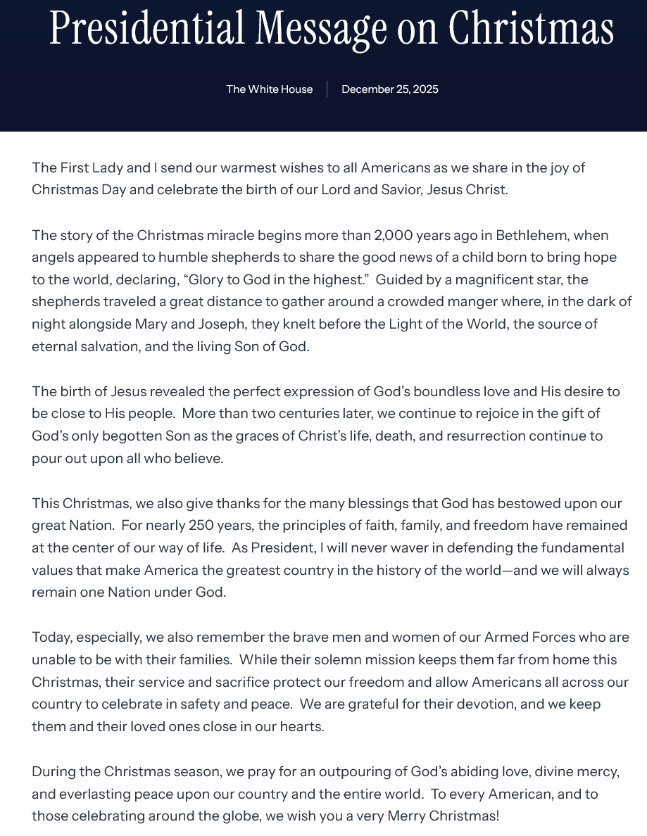 >Pres Trump at National Christmas Tree Lighting, Washington, DC 12/4/2025