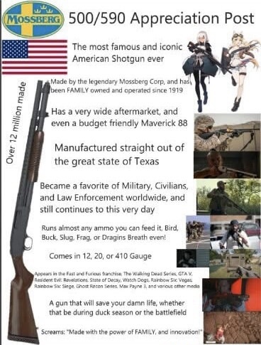 >>524378289Extremely good taste. I have the regular 590 and love it to death. In hindsight I probably should have shelled out for the A1, but the regular is still solid. Thought the safety is sticky as hell, while the A2 I believe have a metal switch that slides smooth.