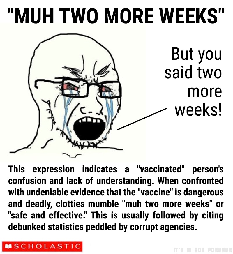 >>524393419>>524393977>vaxxies are dying so hard that I can keep track of them individuallyTwo more weeks, I'm sure