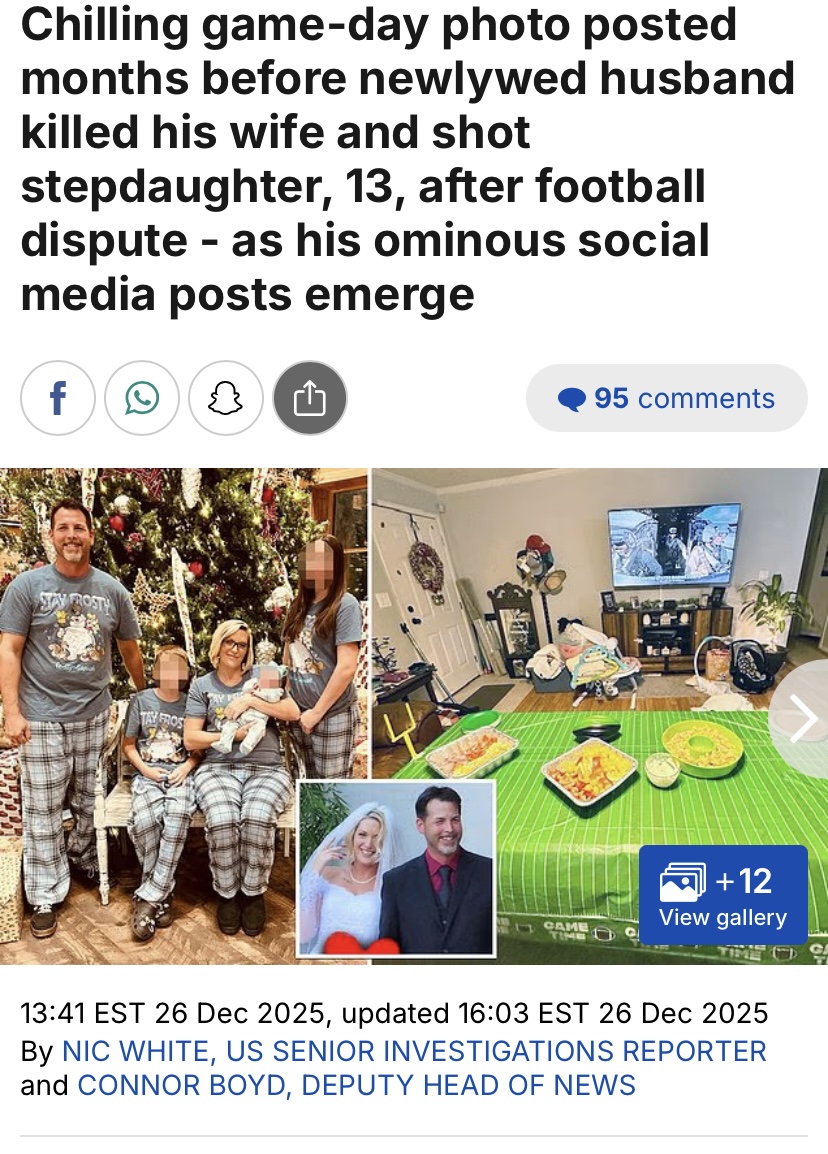 >A few hour before the shooting at 1.54pm, he tagged his wife with a love heart emoji in response to a video with the chilling caption: 'Satan wants your wife. I always tell men if they don't lead their family, Satan will.' SPOOKY