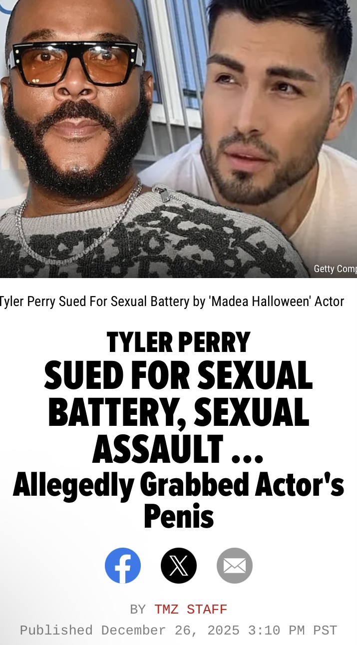 >In 2018, Rodriguez says he went to Perry's house, believing the two would discuss possible career opportunities. However, once there, Rodriguez claims Perry asked him if he enjoyed receiving oral sex before reaching into his underwear and grabbed his penis.>Rodriguez claims Perry gave him money -- $5,000 -- after the incident while apologizing for his alleged conduct.>During another alleged interaction, Rodriguez claims Perry grabbed his hand and forced him to touch Perry's penis. When Rodriguez says he got up to leave, he claims Perry gave him another $5K.>Rodriguez is suing Perry for sexual assault, sexual battery, and emotional distress ... and, he's asking for punitive damages of at least $77 million.https://www.tmz.com/2025/12/26/tyler-perry-sued-sexual-battery/