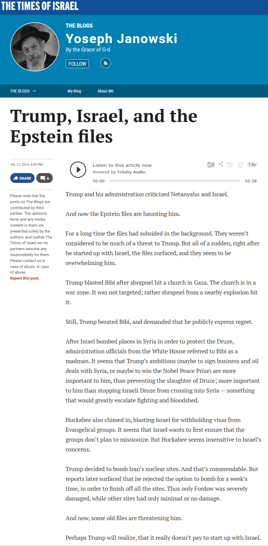 I agree, he has an agenda. He's an agent provocateur. It would a lot easier to see if Trump wasnt so overly pro Israel.