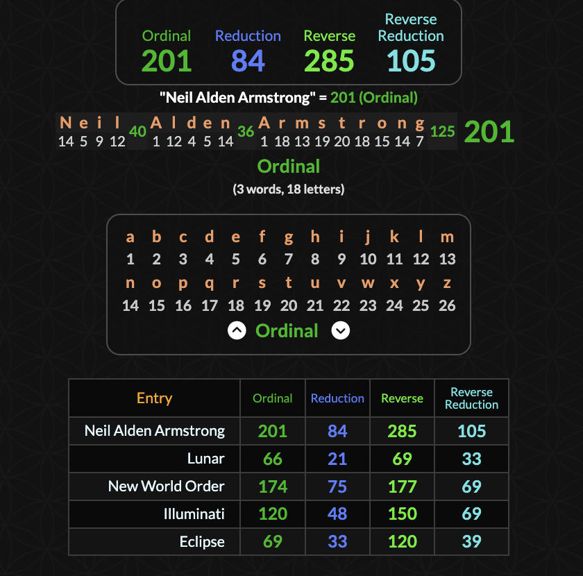 >>524417456the moon landing was the 201st day of 69 in the time of cancer which is ruled by the moon and its symbol is 69