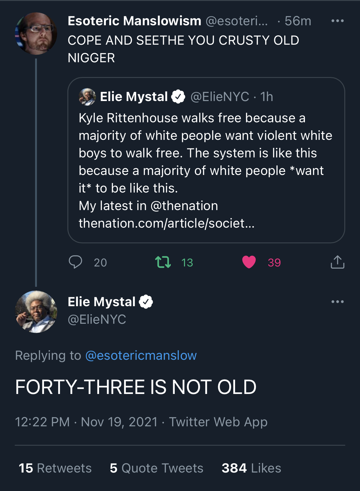 >>524435792Him trying to gaslight the entire country into national racist outrage is the very definition of "terrorism' that the left uses to define harmful words from the right but then they were completely silent to condemn this guy. This case specifically high lights how speech made to induce violence is not treated equally.