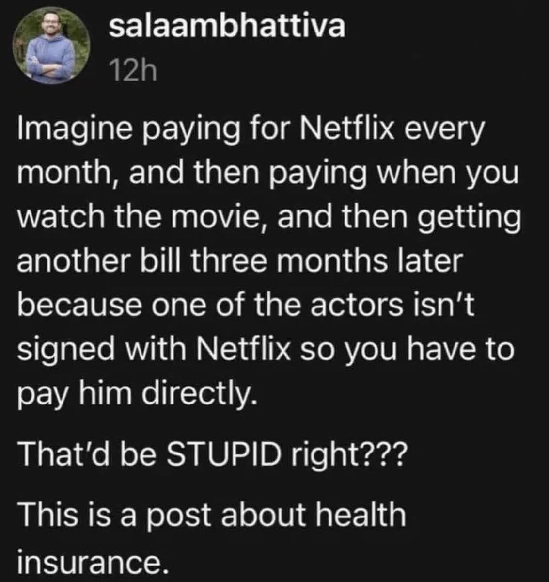 Americans trying to justify this should have insurance that covers acrobatics